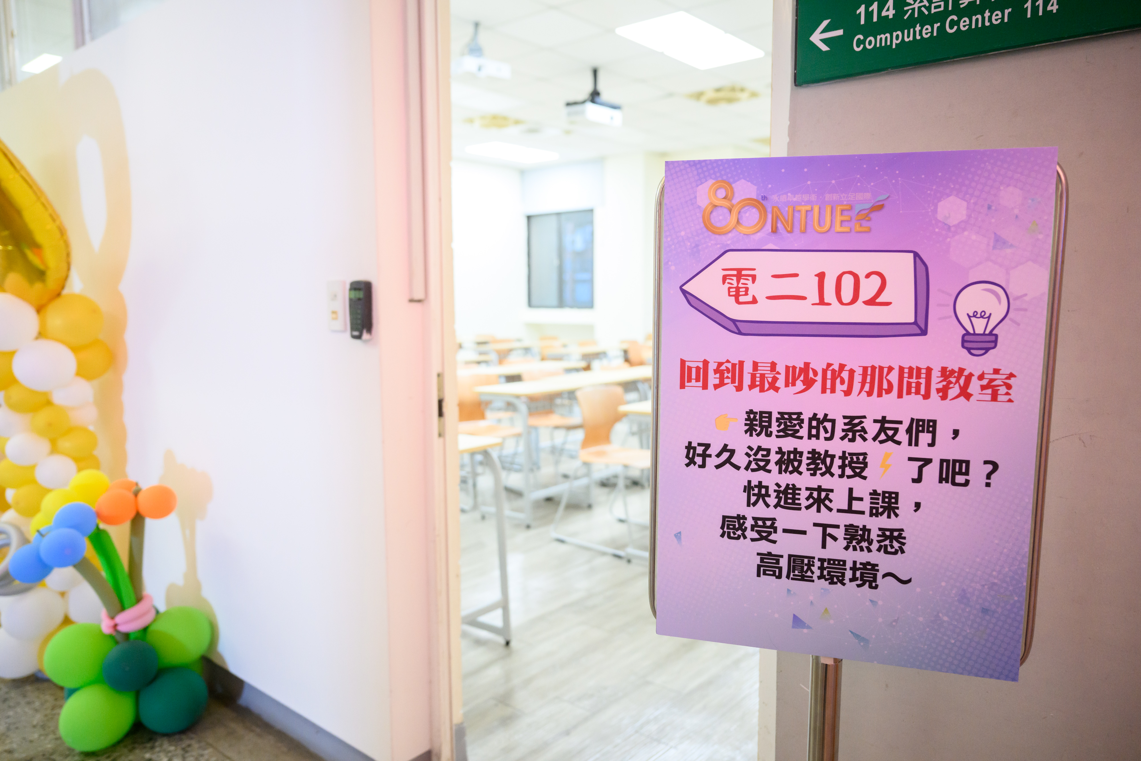 80週年的系慶,系上精心規畫了多個活動來替母系慶生。下午兩點到五點,在博理館101大講堂安排了系況報告與主題論壇活動,透過演講、座談交流等形式,讓返校系友能更完整了解母系現況,以及未來的發展方向。與此同時,博理館地下室博理藝廊正在進行學生創意成果展,展示電機系在學學生於課程、研究與課外活動中累積的多元成果;二樓則規劃了系史懷舊物件與教師跨域成果展,透過系上與系學會過去的文件、照片與文物,引起系友們的共鳴與回憶。整棟博理館彷彿化身為一座立體的系史與系況展場,讓系友在移動的過程中,自然走入時間軸與不同世代的電機故事。