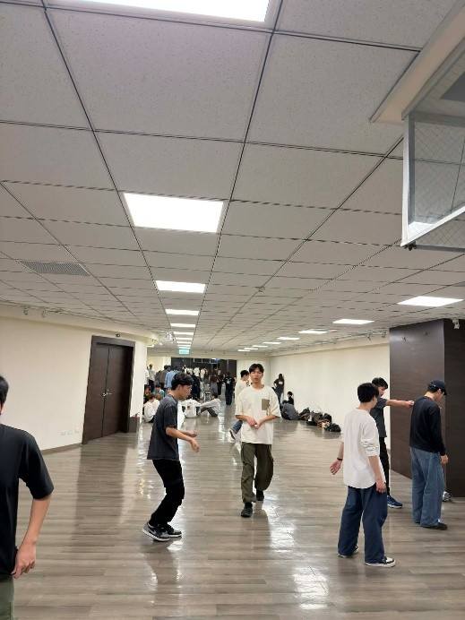 有時候,排練會持續到深夜。當藝廊的燈光亮著,鏡面反射出一群同學不斷練習的身影,那種專注與投入的氛圍,成為電機系學生生活中獨特的一部分。鏡子裡映照的不只是舞步與動作,更是一群學生為了共同目標努力的過程。